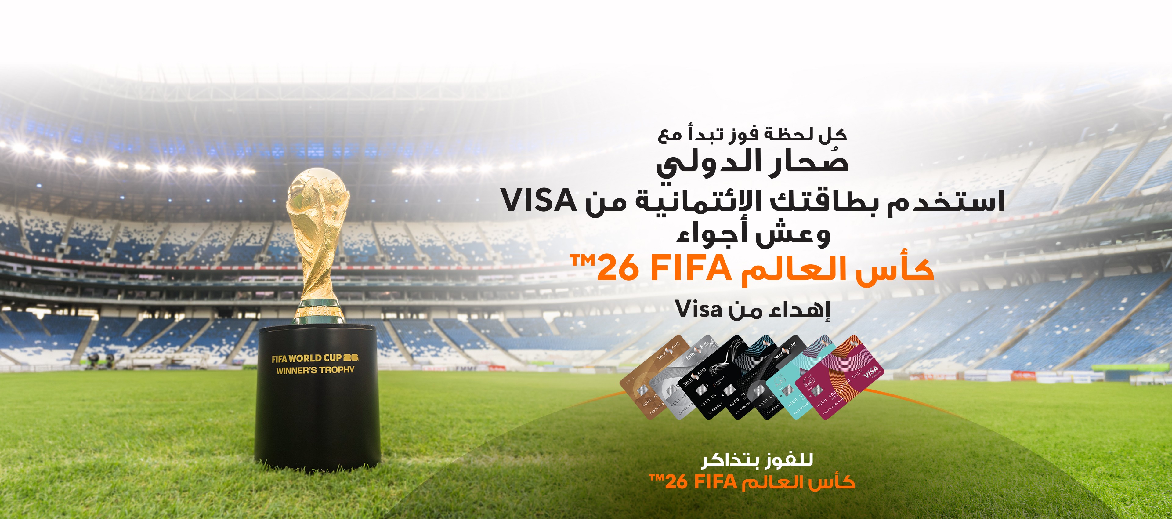 احصل على فرصة الفوز بتجربة استثنائية في كأس العالم 2026 عند استخدم بطاقات صحار الدولي الإئتمانية من VISA.